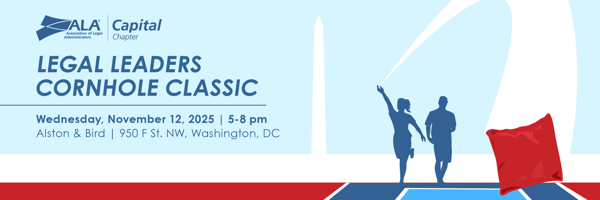 Please join the Capital Chapter Association of Legal Administrators, along with DMV-area attorneys and other distinguished leaders from Washington, DC’s legal and professional community, for a spirited cornhole competition benefiting the Toni K. Allen Scholarship. Click here for event information.
